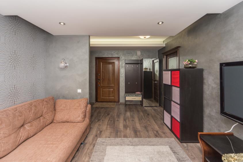 Эта уютная квартира создана для тех, кто ценит эстетику минимализма и комфорт в деталях. Каждый квадратный метр здесь продуман до мелочей.