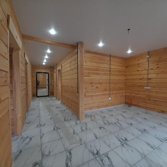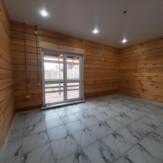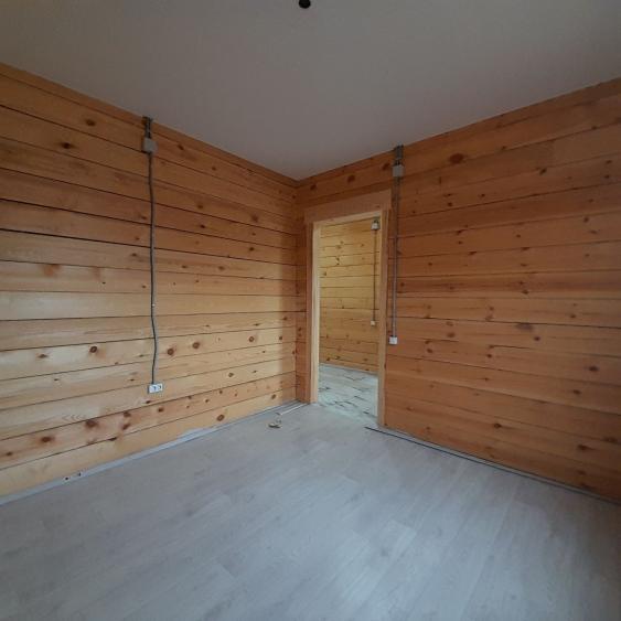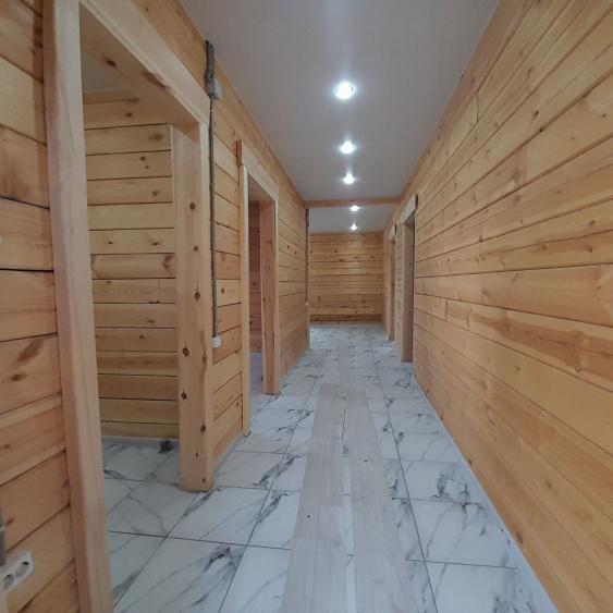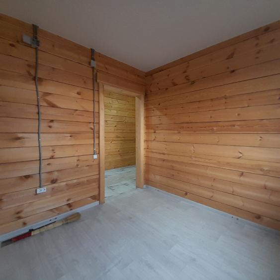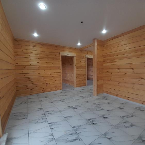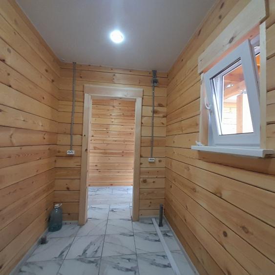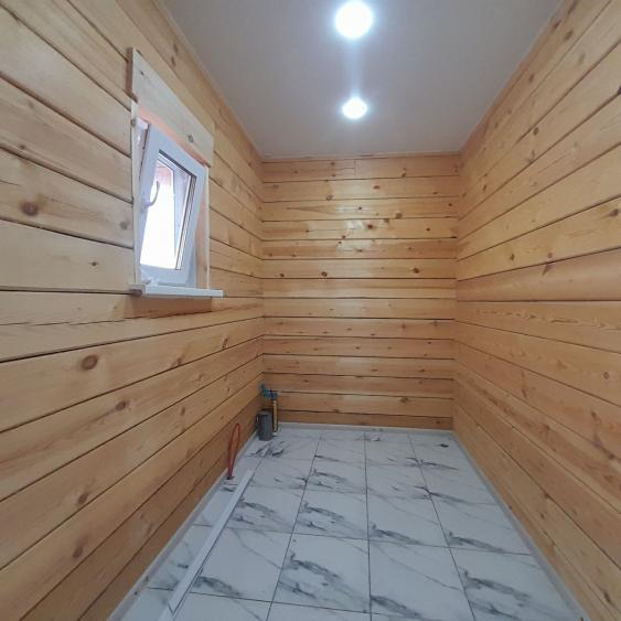 В доме : натяжные потолки, в комнатах- качественный линолеум. В санузле, в прихожей и кухне- студии напольная плитка. Брус отшлифованный. В санузле: ванная, унитаз,