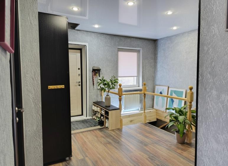 Продается уютный и теплый дом , который идеально подойдет для комфортной жизни в городе. Этот двухэтажный дом выделяется своей интересной планировкой, продиктованной особенностями ландшафта.