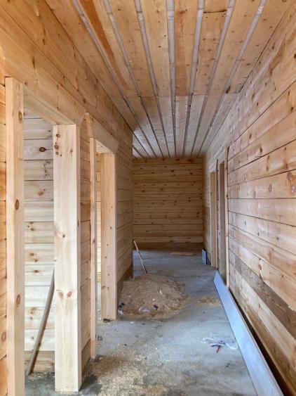 На первом этаже просторная кухня-гостиная с выходом на терассу, три спальни, санузел. Второй этаж свободной планировки. Будут выполнены следующие виды работ: Напольное покрытие, натяжные потолки. Электроэнергия подключена официально 15 кВт. Гараж с автоматическими воротами.