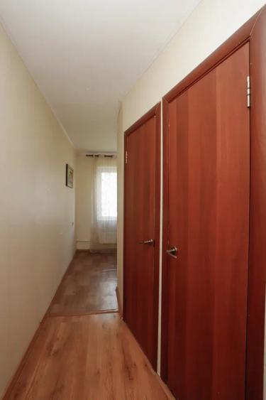 Полы выровнены и постелен ламинат, ровные потолки, хорошая входная дверь.