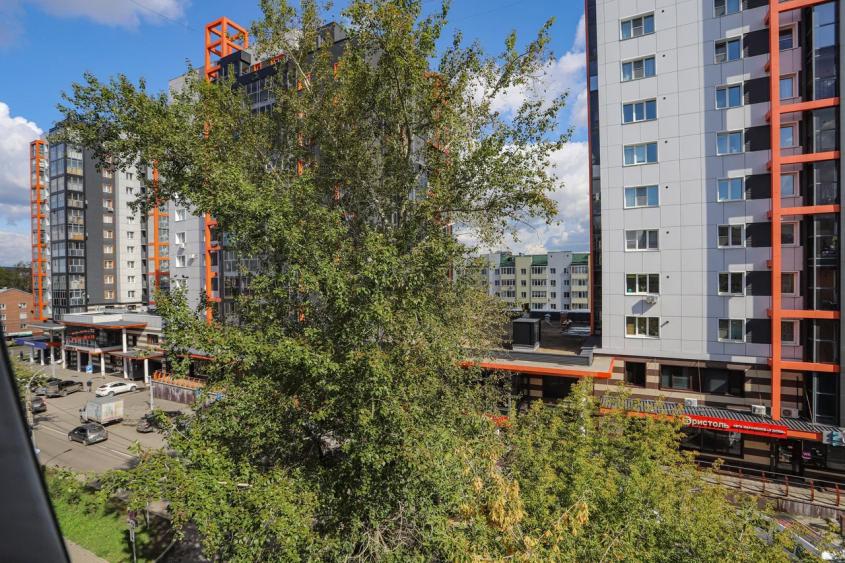В 5 минутах ходьбы остановка. В квартире есть балкон 3 м, с которого открывается вид на город. Если у вас есть дети-эта квартира идеальна для вас, так как имеется действительно хорошая детская площадка, тренажеры, и поле для активных игр.