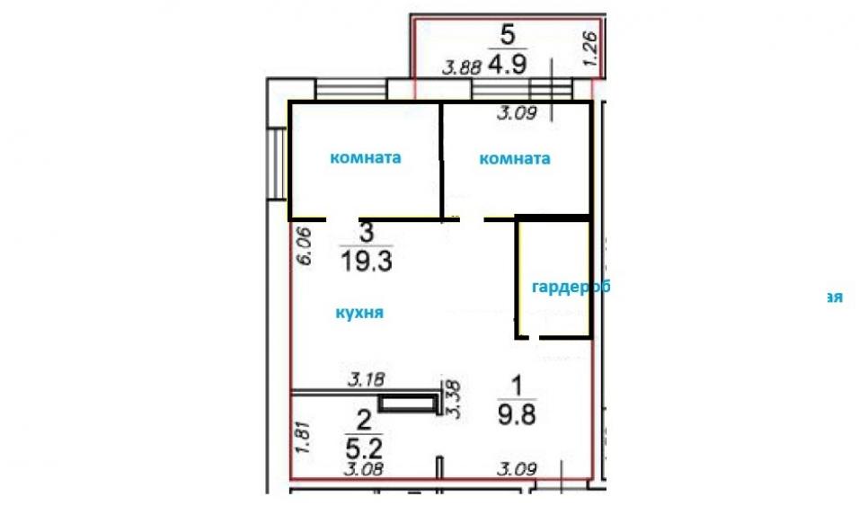 Oбщая площадь квapтиры с учетом лоджии соcтaвляeт 53,8 кв. м.
