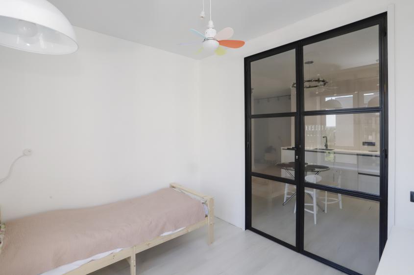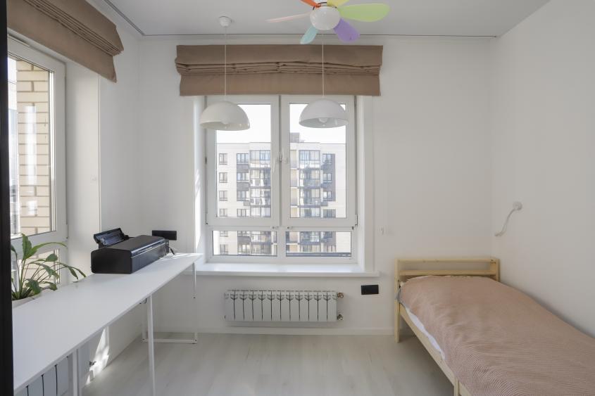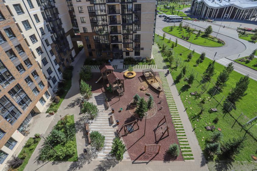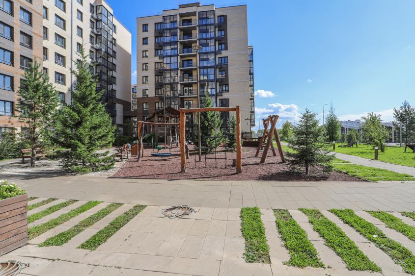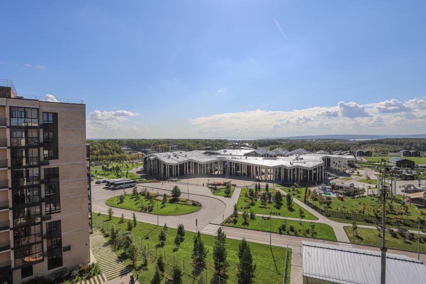Окна выходят во двор и на школу "Точка будущего". Огороженная территория, двор только для жителей комплекса, детские площадки для разных возрастов детей.