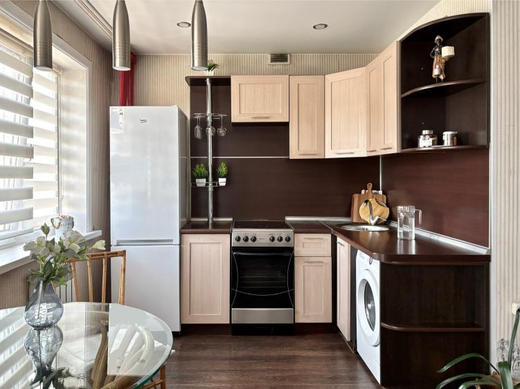В квартире остается: кухонный гарнитур, плита, стиральная машина, остальное по договоренности. Проведена замена всей сантехники и труб.