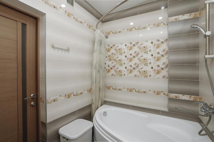 · Практичная плитка на кухне, в прихожей и санузле. В комнатах — ламинат.