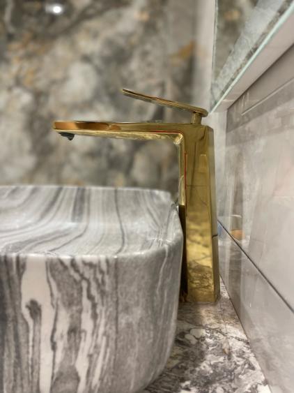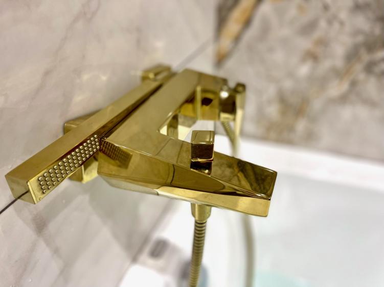 - Сантехника Вrаvаt Iсеbеrg в глянцевом золоте (180 000 ₽) — роскошь в каждой детали.