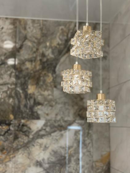 - Итальянская люстра (70 000 ₽) — яркий акцент в гостиной, создающий атмосферу праздника.