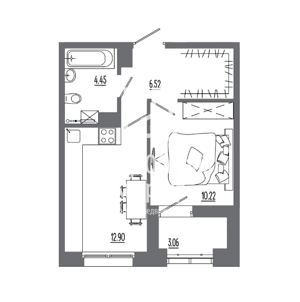 Общая площадь 33,4 кв.м. (без учёта балкона) + небольшой балкон с панорамным остеклением (3 кв.м.). Этаж/Дом: 13 этаж надежного 16-этажного монолитного дома - больше света и воздуха, меньше пыли и шума. Кухня-гостиная, спальня, место под вместительную гардеробную и довольно просторный совмещенный санузел.